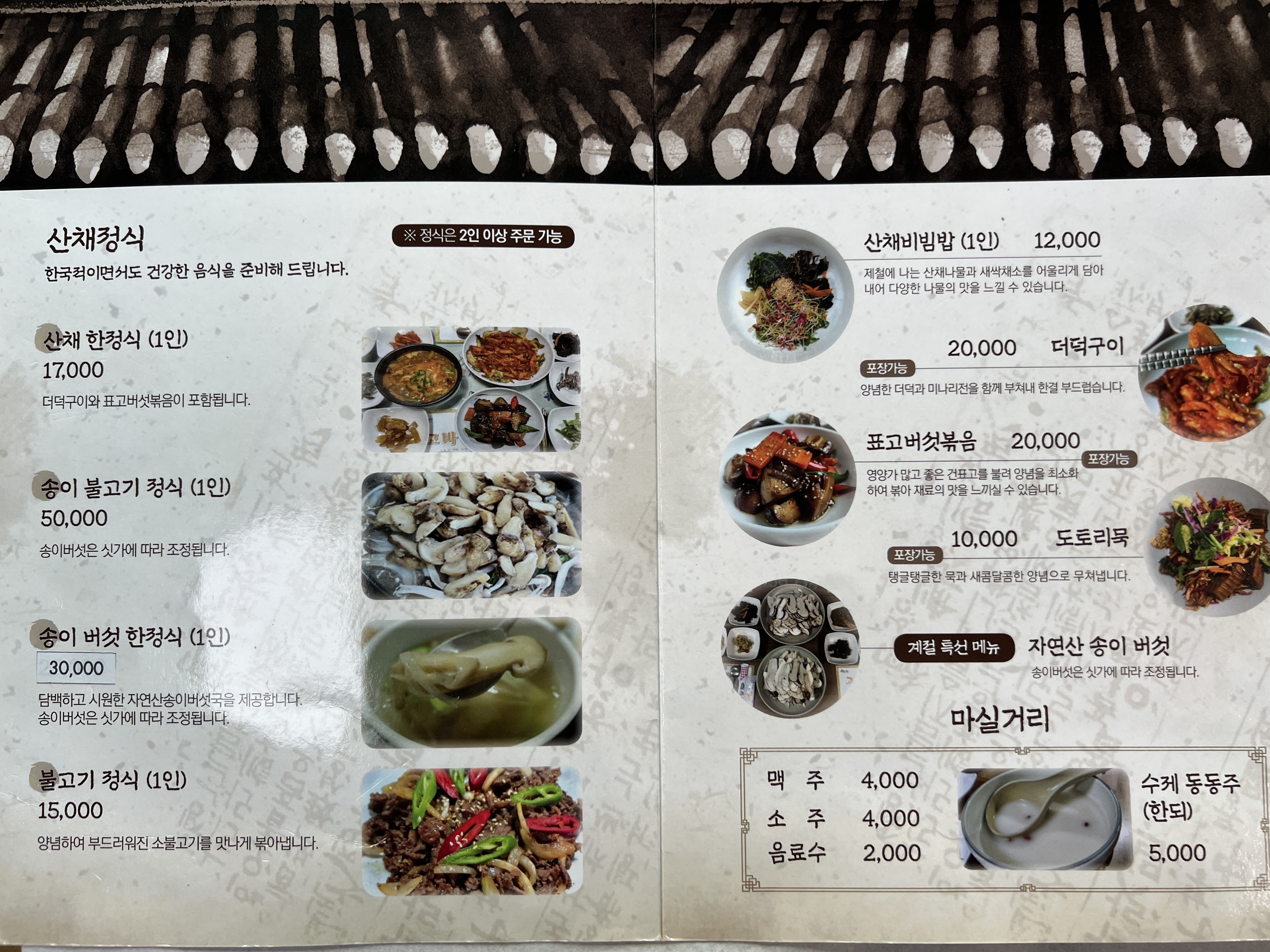 저희는 산채 한정식(17,000원)을 주문했습니다.