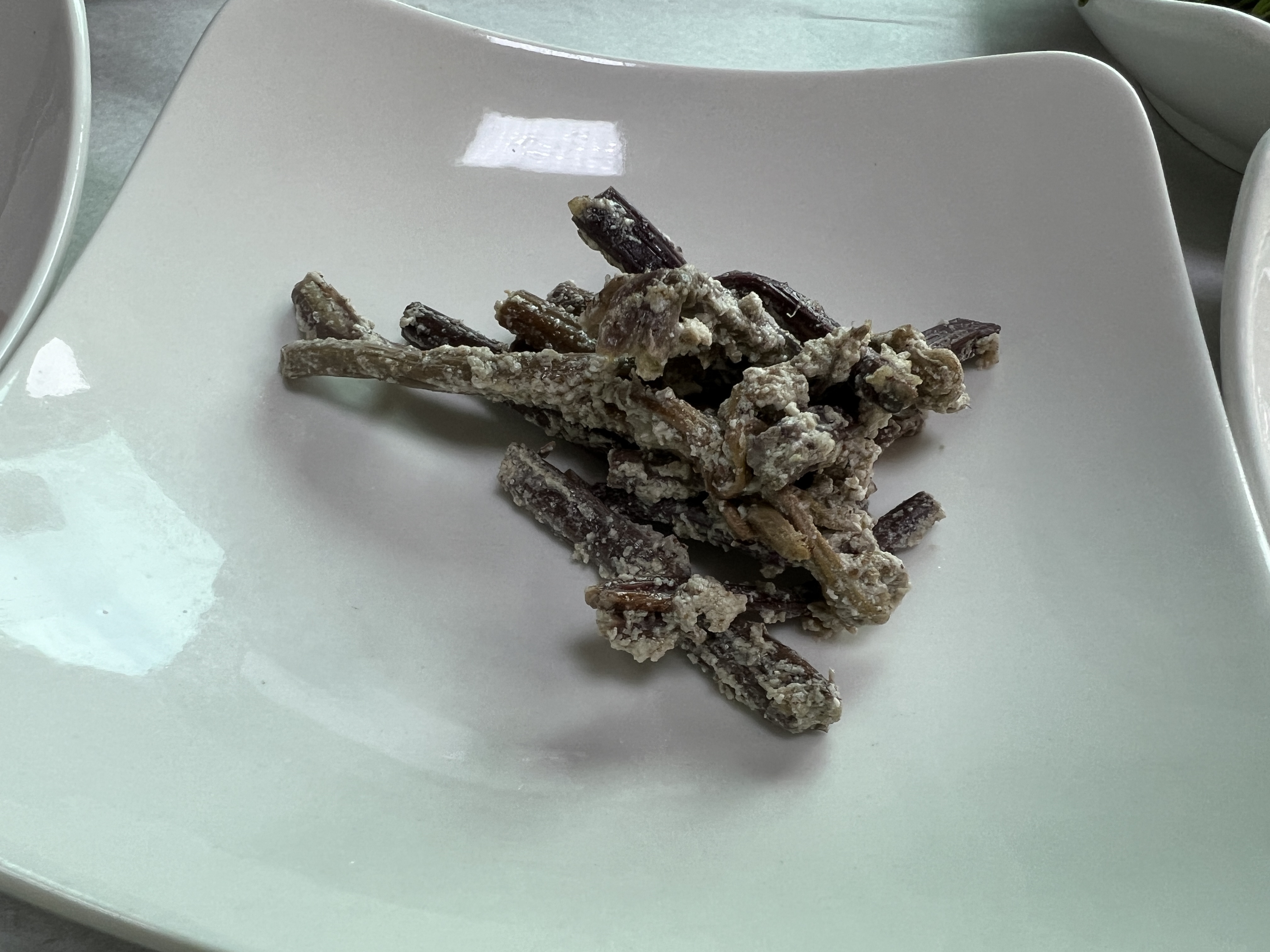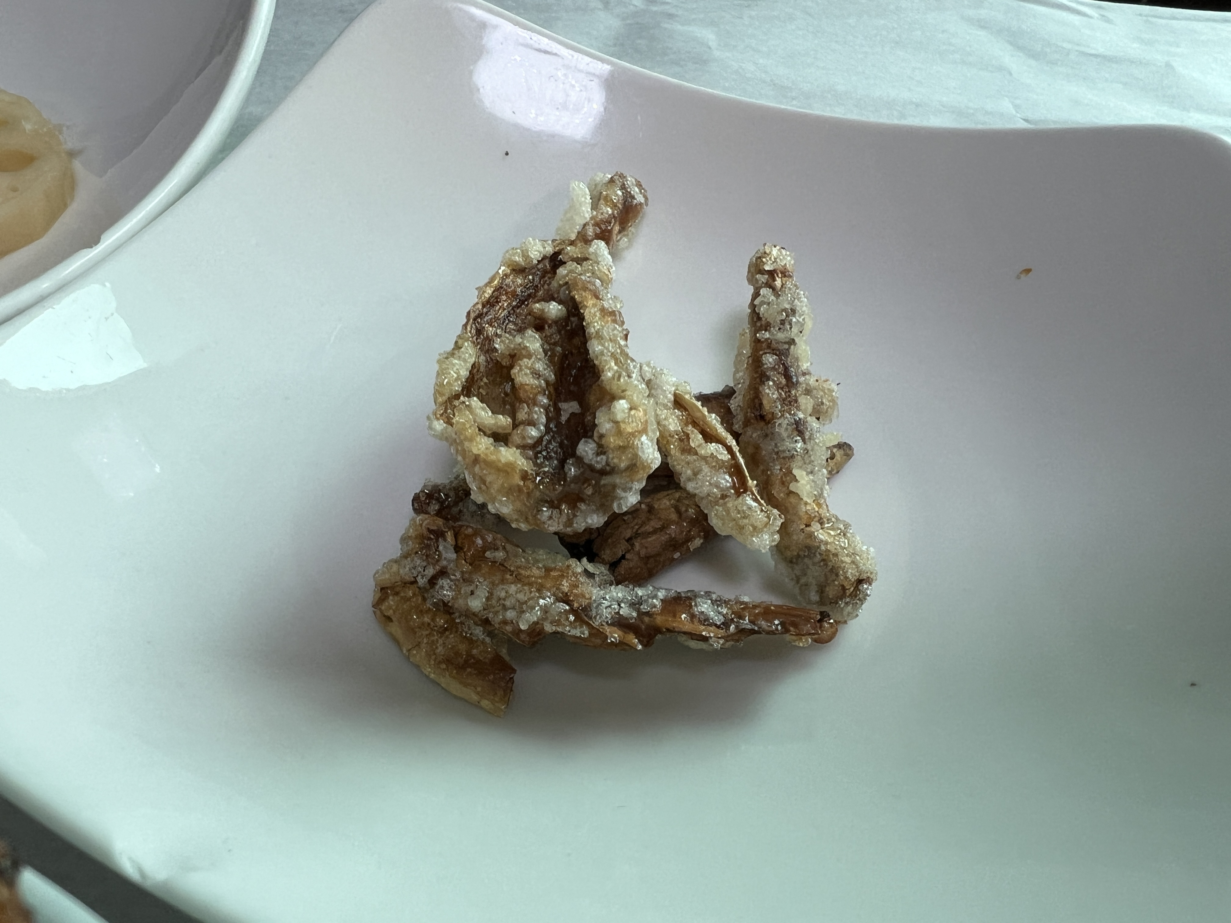 바삭한 식감과 고추의 아린 맛이 좋습니다.