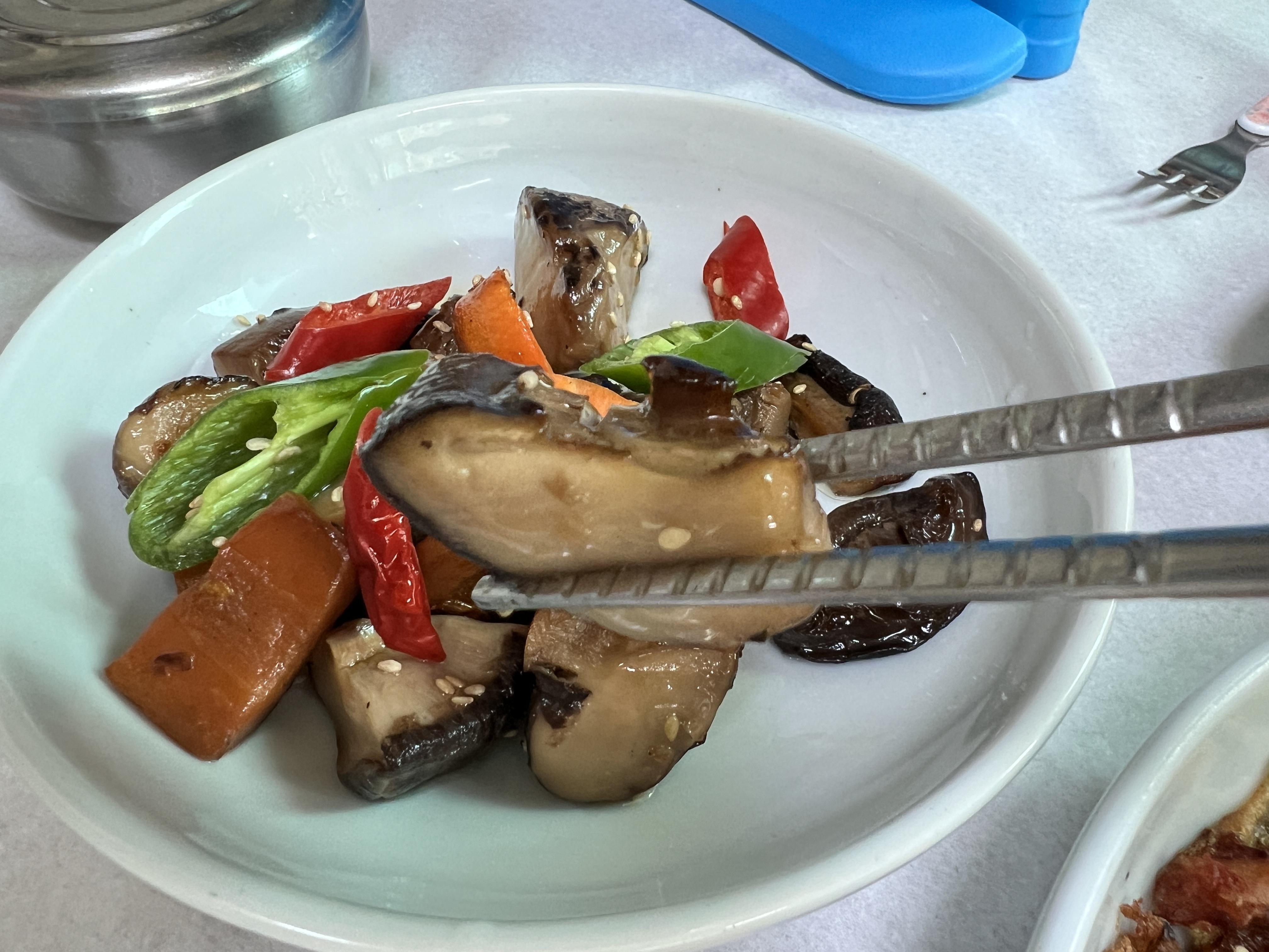 표고버섯볶음은 향과 식감 모두 훌륭합니다.